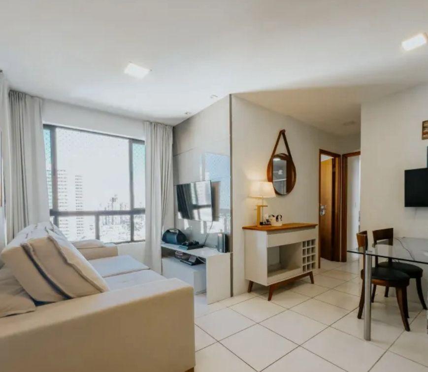 Apartamento em Candeias, com 50 m², composto por 02 quartos, sendo 01 suíte, sala para 02 ambientes, wc social, cozinha, área de serviço e 01 vaga de garagem.