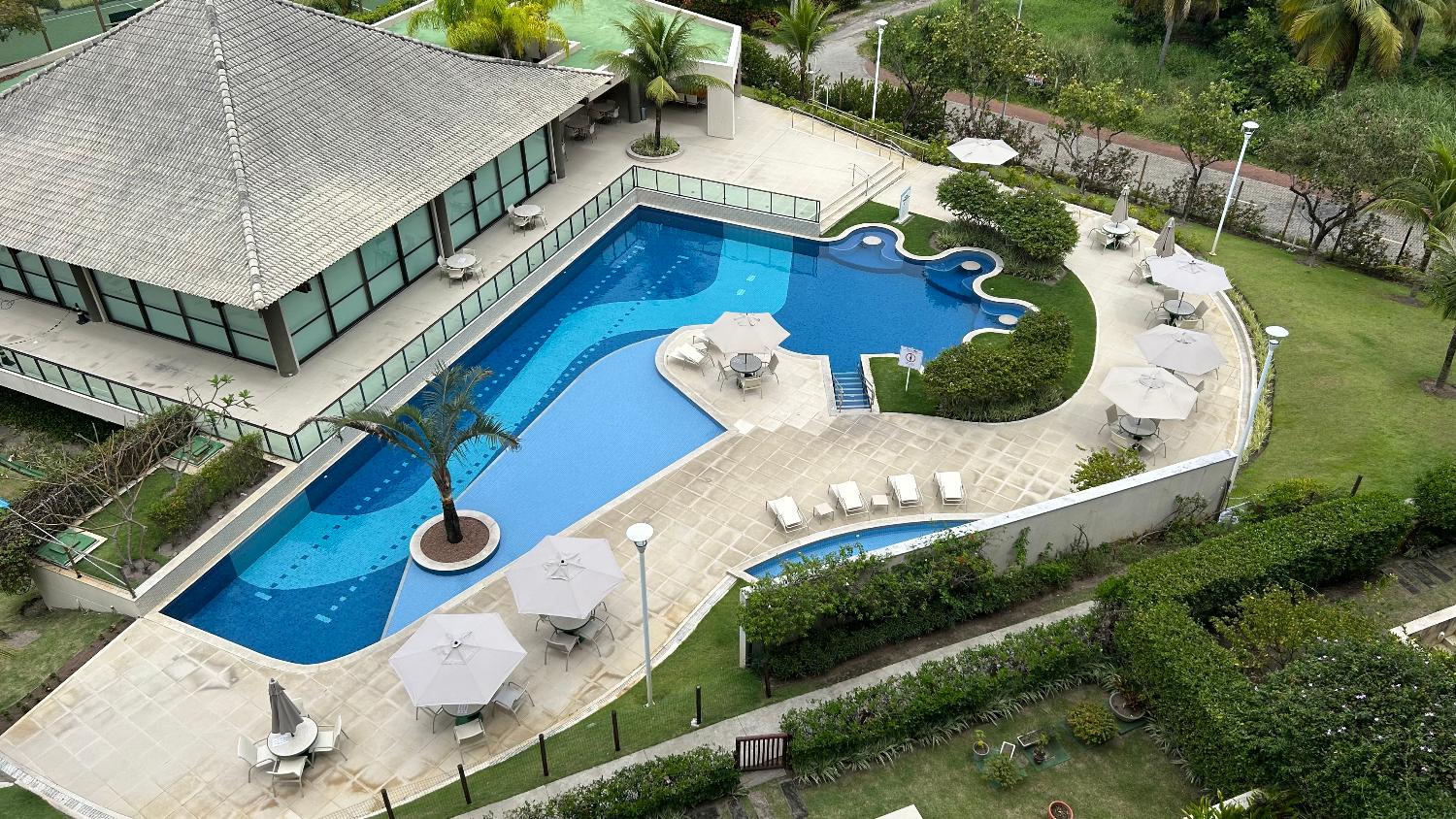 Condomínio pé na areia, com área de lazer completo com piscina para adultos e piscina para crianças, churrasqueira, academia, playground, sala de massagem, espaço cinema, parquinho, salão de festa, SPA, portaria 24h, concierge, segurança eletrônica e outras comodidades.