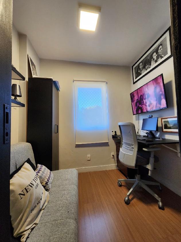 Apartamento com 66 m². O imóvel é composto por 02 quartos sendo 01 suíte, mais 01 quarto reversível, sala para 02 ambientes, wc social, cozinha e área de serviço. Dispõe de 01 vaga de garagem.