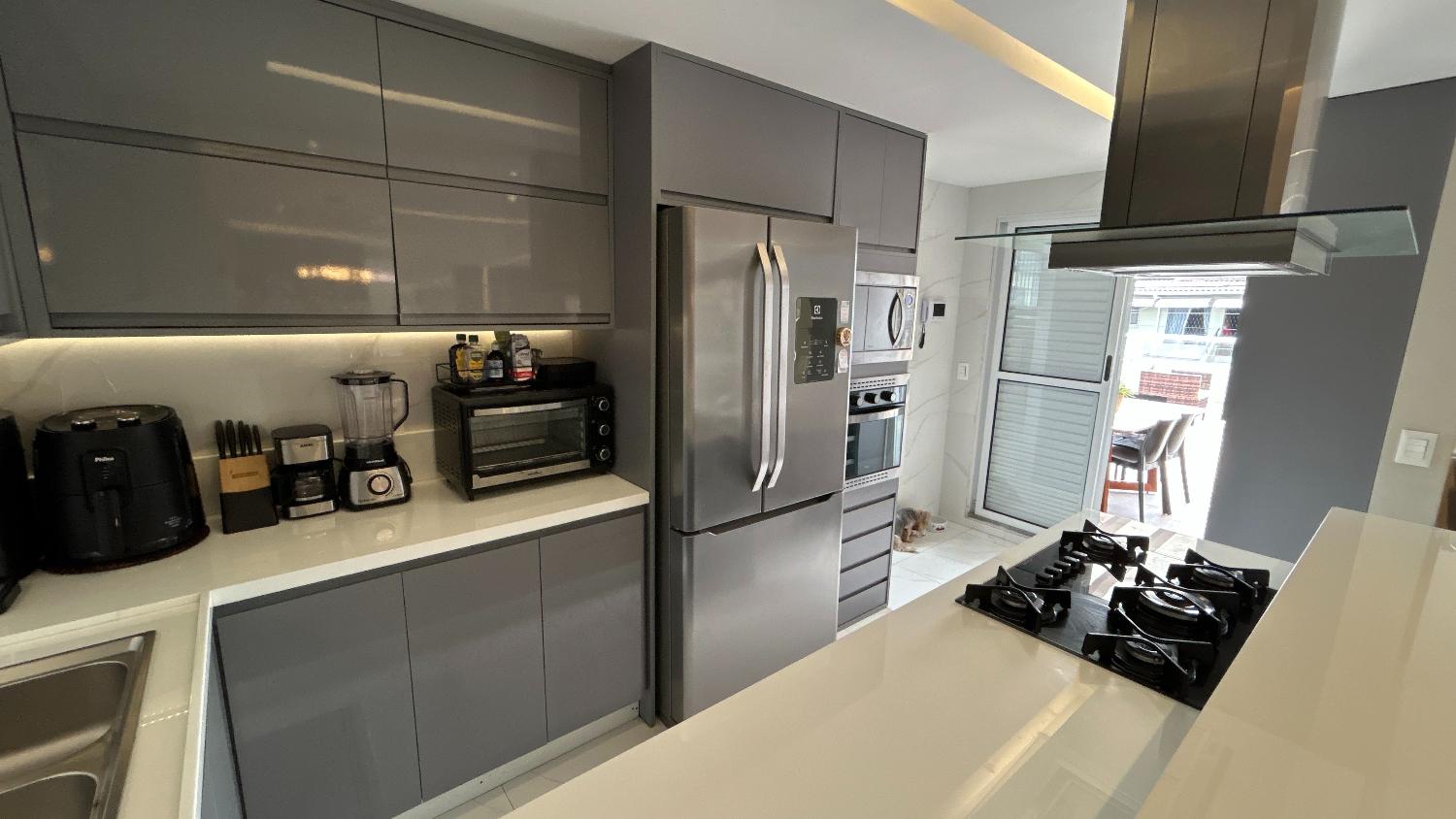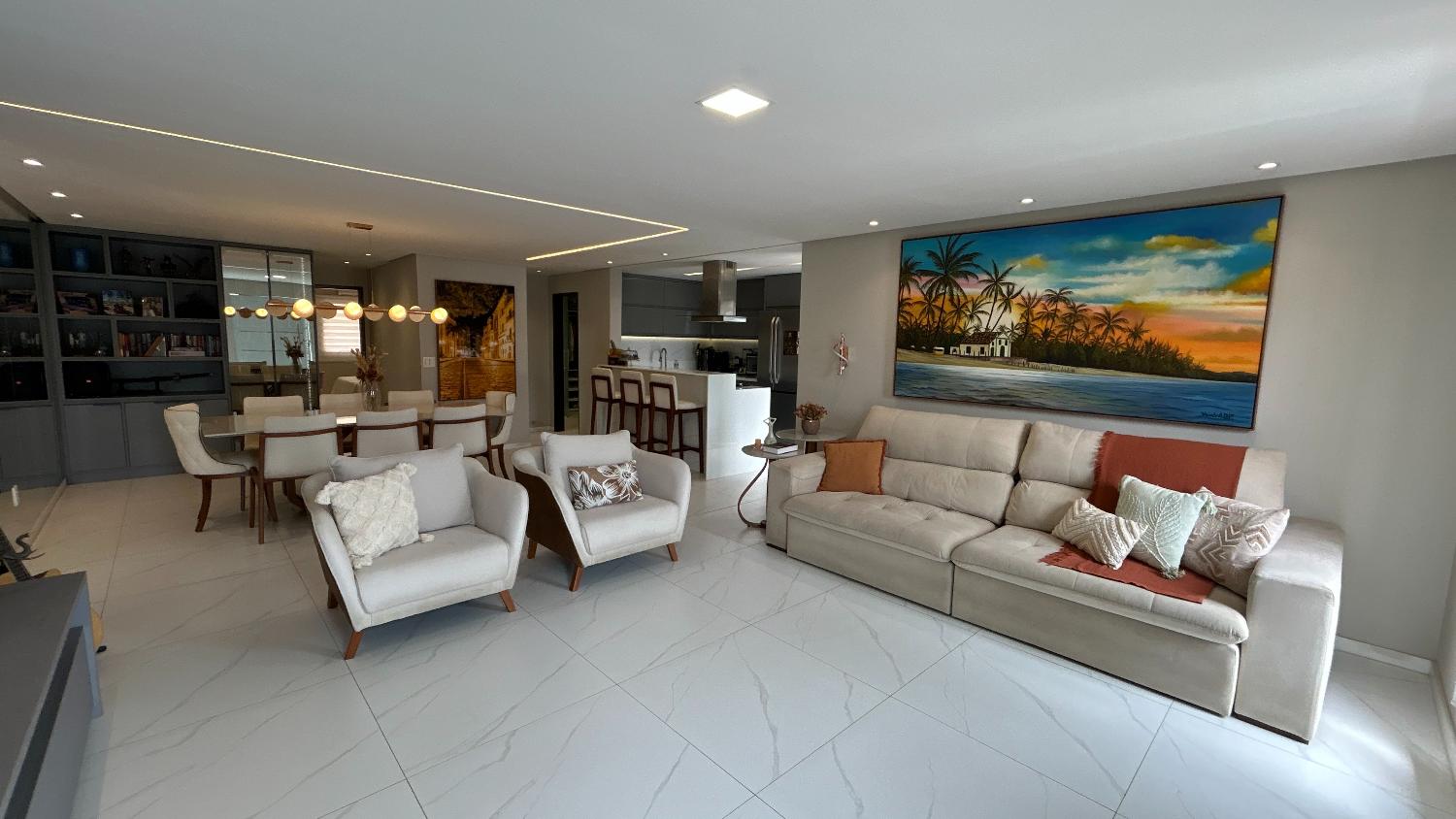 Com 149 m², composto por 03 quartos, sendo 02 suítes, Closet na suíte master, sala para 02 ambientes, lavabo, cozinha americana toda no mármore nanoglass, área de serviço, terraço gourmet com churrasqueira e 02 vagas de garagem.