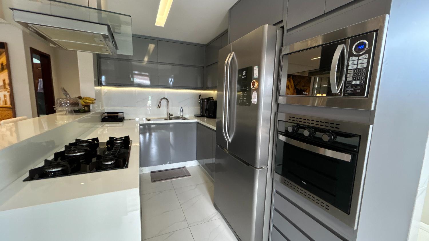 Casa projetada por arquiteto, revestida todo no porcelanato 90x90, cozinhas e banheiros com as cubas em mármore nanoglass. Toda reformada e ambientada no mínimo detalhe.