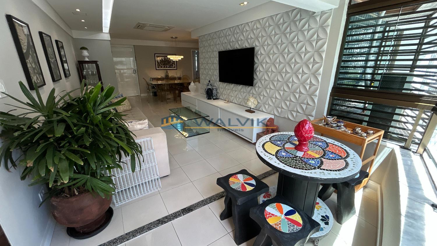 Com 125 m², composto por 03 suítes, Closet na suíte master, sala para 02 ambientes, varanda integrada à sala, lavabo, cozinha, área de serviço, dependência completa e 03 vagas de garagem.