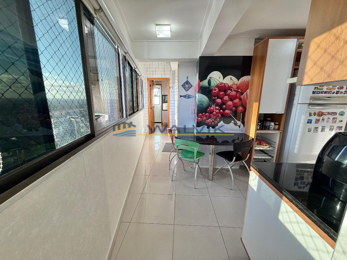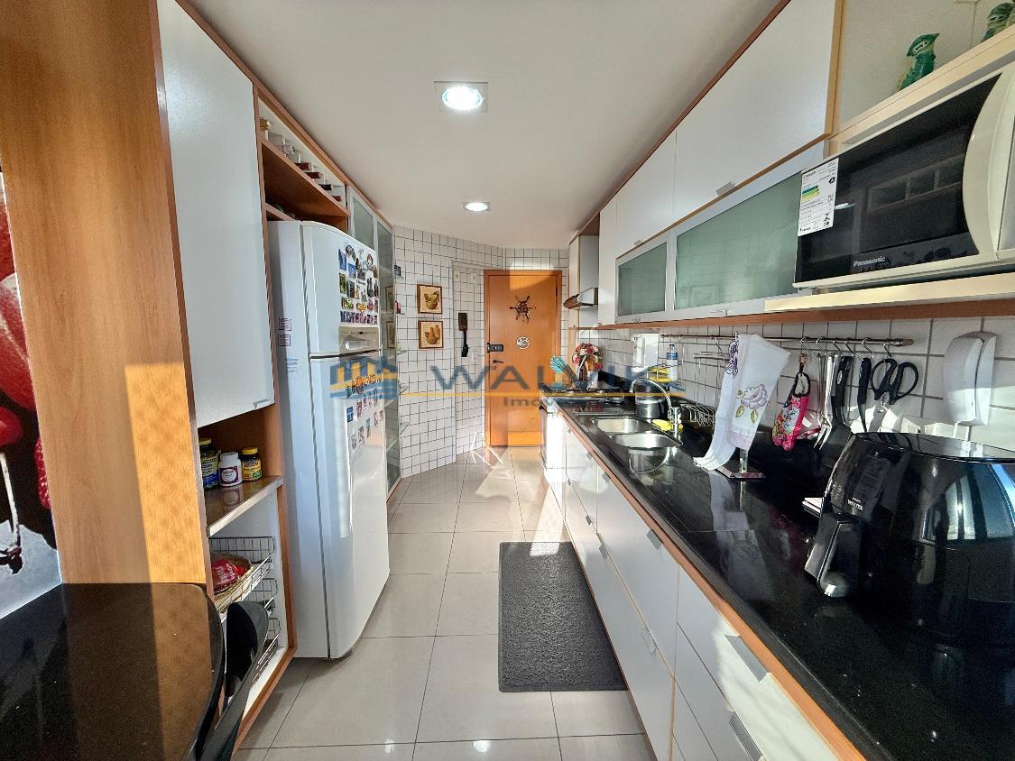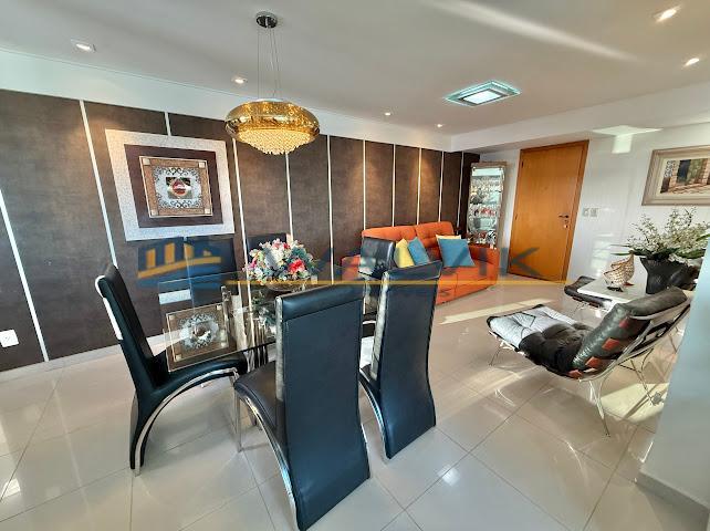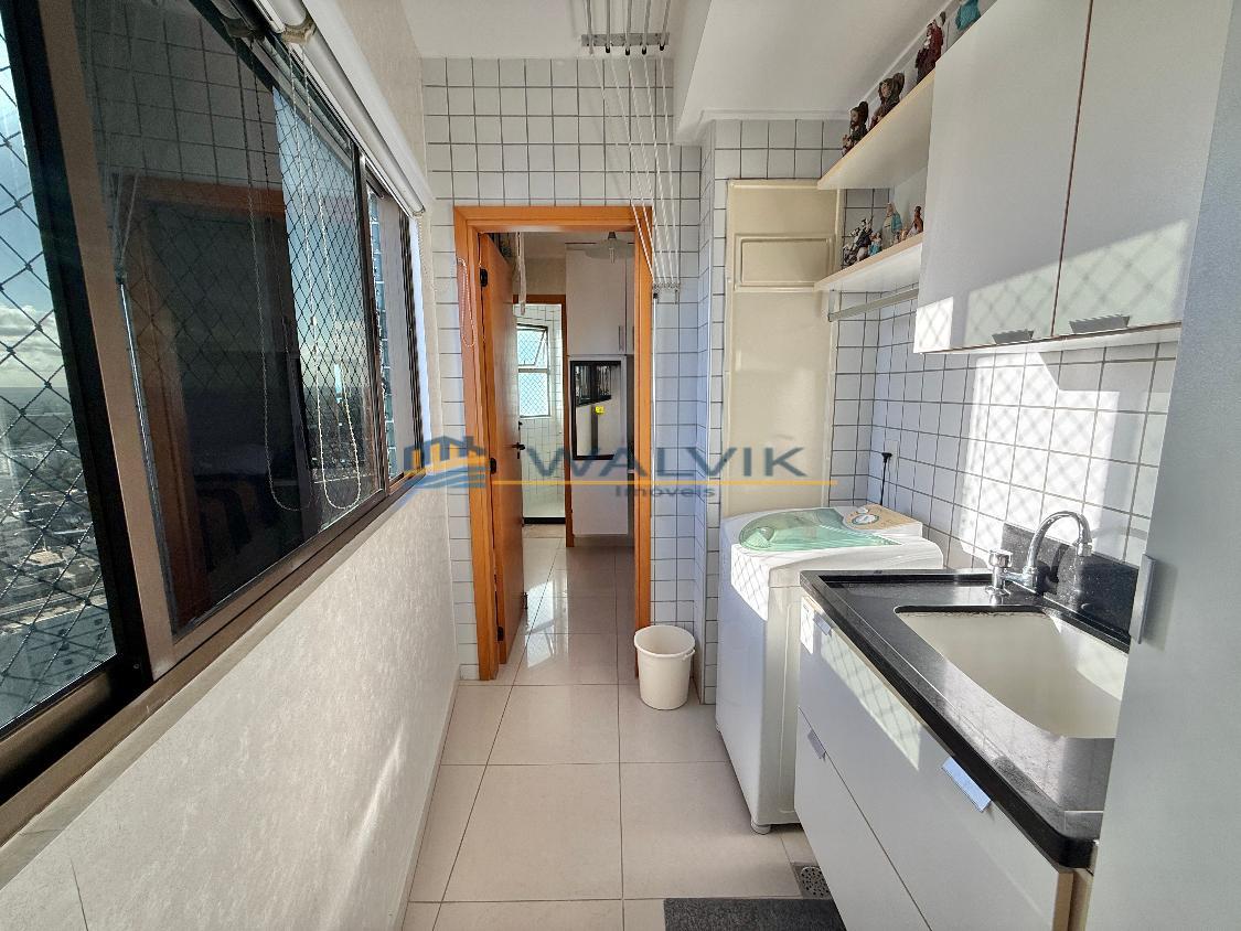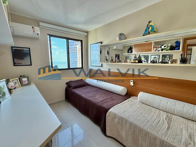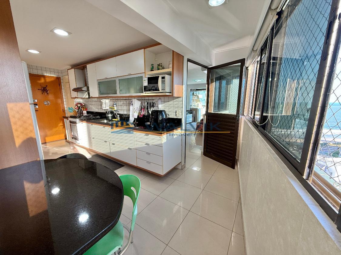 Com 105 m², 02 quartos sendo 01 suíte + closet (planta original com 03 quartos, que foi usado para fazer o closet), Sala para 02 ambientes, Varanda integrada, Nascente, Vista mar, Wc social, Cozinha, Área de serviço, Dependência completa, Móveis planejados em todos os cômodos e 02 vagas de garagem cobertas e soltas.