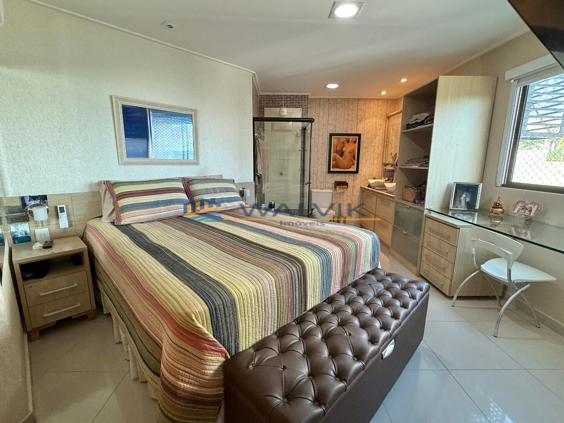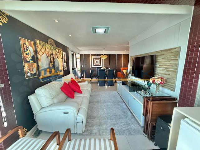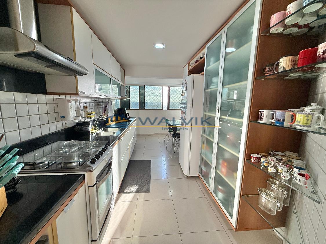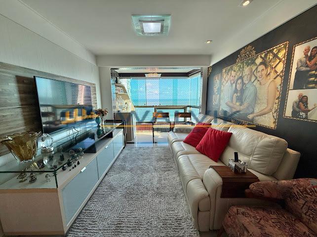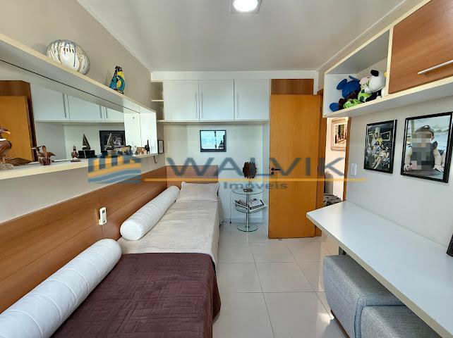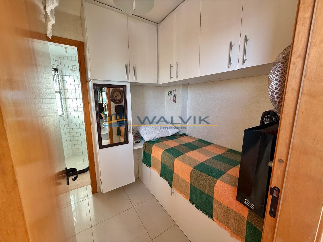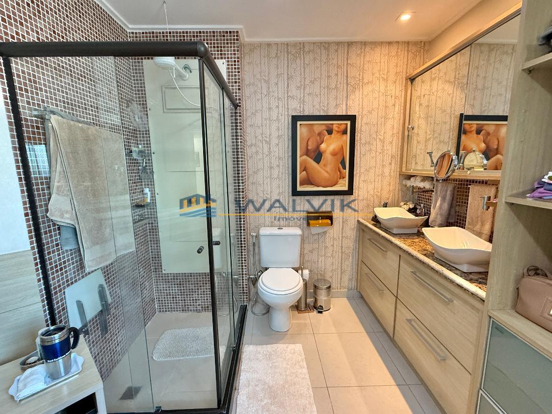Com 105 m², 02 quartos sendo 01 suíte + closet (planta original com 03 quartos, que foi usado para fazer o closet), Sala para 02 ambientes, Varanda integrada, Nascente, Vista mar, Wc social, Cozinha, Área de serviço, Dependência completa, Móveis planejados em todos os cômodos e 02 vagas de garagem cobertas e soltas.