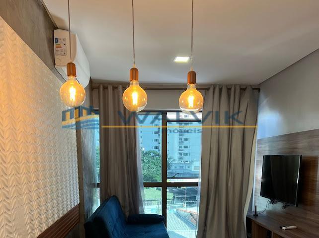 Flat no Edf. Quinta das Orquídeas - Rosarinho, com 33 m², 01 quarto Sala, BWc social, Cozinha, 1 vaga de garagem fixa e descoberta. Ele está Mobiliado com Móveis planejados, Ar-condicionado split na sala e no quarto, Smart TV, Sofá, Mesa jantar e cadeiras, Geladeira, fogão e micro-ondas, Box, ducha, chuveiro elétrico e espelho no banheiro, Cama box, Cortinas e Luminárias.