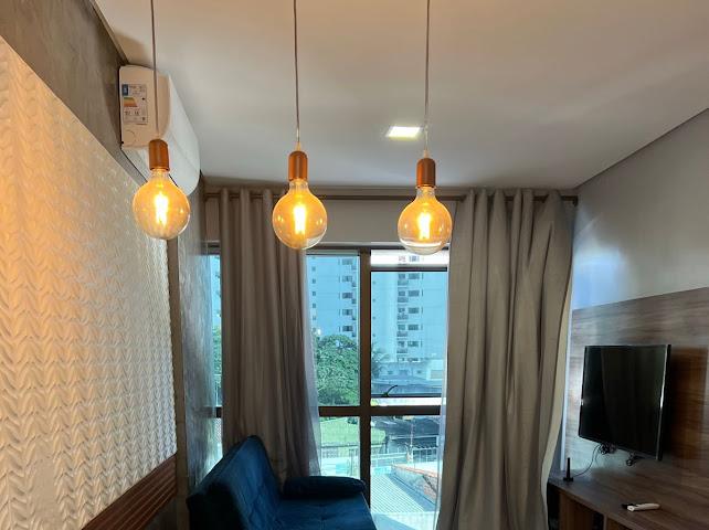 Flat no Edf. Quinta das Orquídeas - Rosarinho, com 33 m², 01 quarto Sala, BWc social, Cozinha, 1 vaga de garagem fixa e descoberta. Ele está Mobiliado com Móveis planejados, Ar-condicionado split na sala e no quarto, Smart TV, Sofá, Mesa jantar e cadeiras, Geladeira, fogão e micro-ondas, Box, ducha, chuveiro elétrico e espelho no banheiro, Cama box, Cortinas e Luminárias.