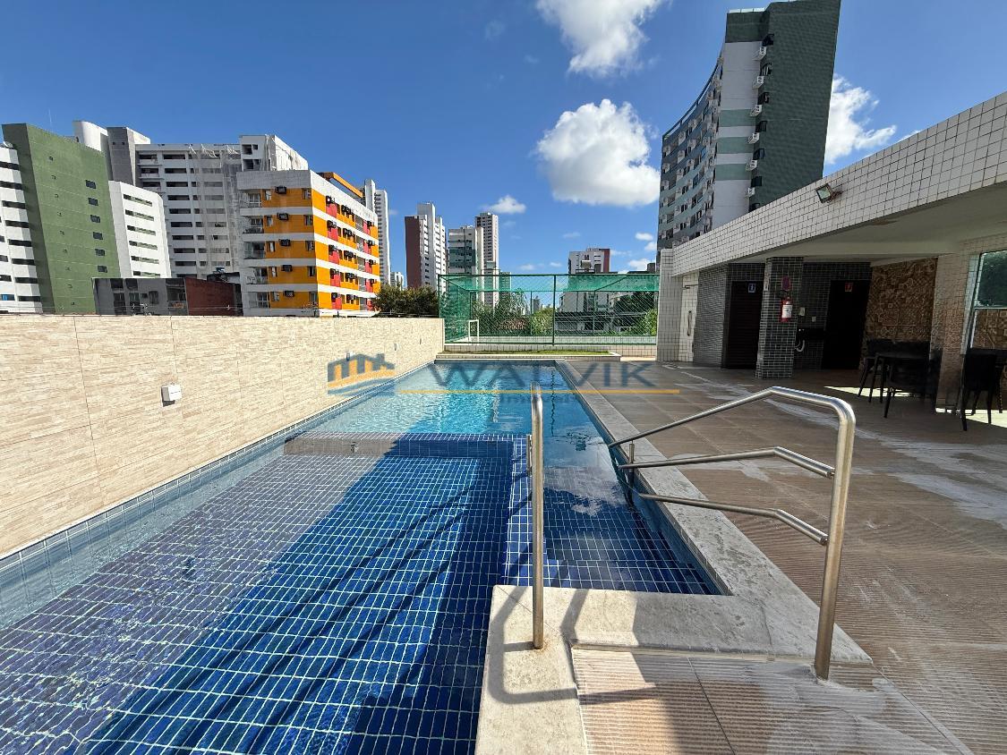 Apartamento para locação no bairro da Torre com 53m², 02 quartos sendo 01 suíte, sala para 02 ambientes, varanda integrada, wc social, cozinha americana, área de serviço, móveis planejados, semimobiliado e 01 vaga de garagem fixa e coberta.