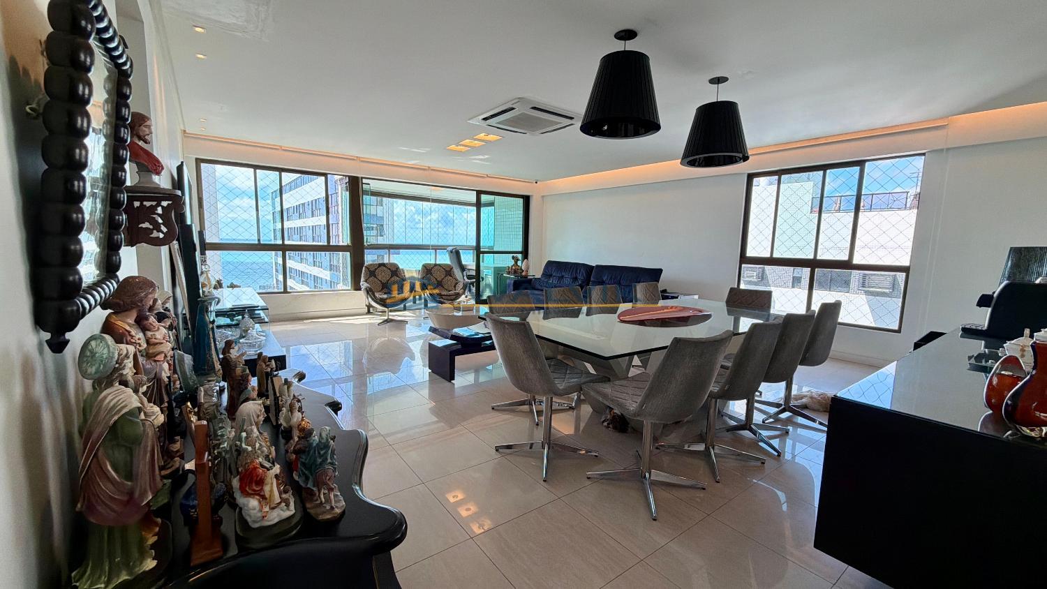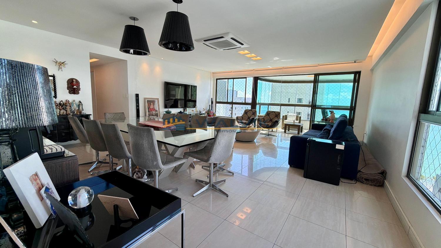 Apartamento à venda na Rua Setúbal, vista mar, nascente, com 174m², 04 suítes, sala ampla, varanda, lavabo, cozinha, área de serviço, dependência completa e 03 vagas de garagem cobertas (sendo 01 livre).