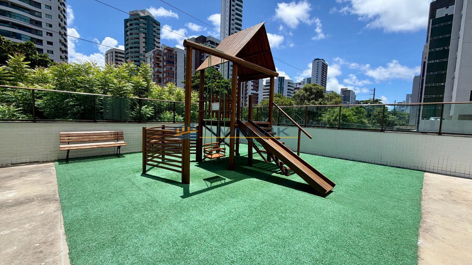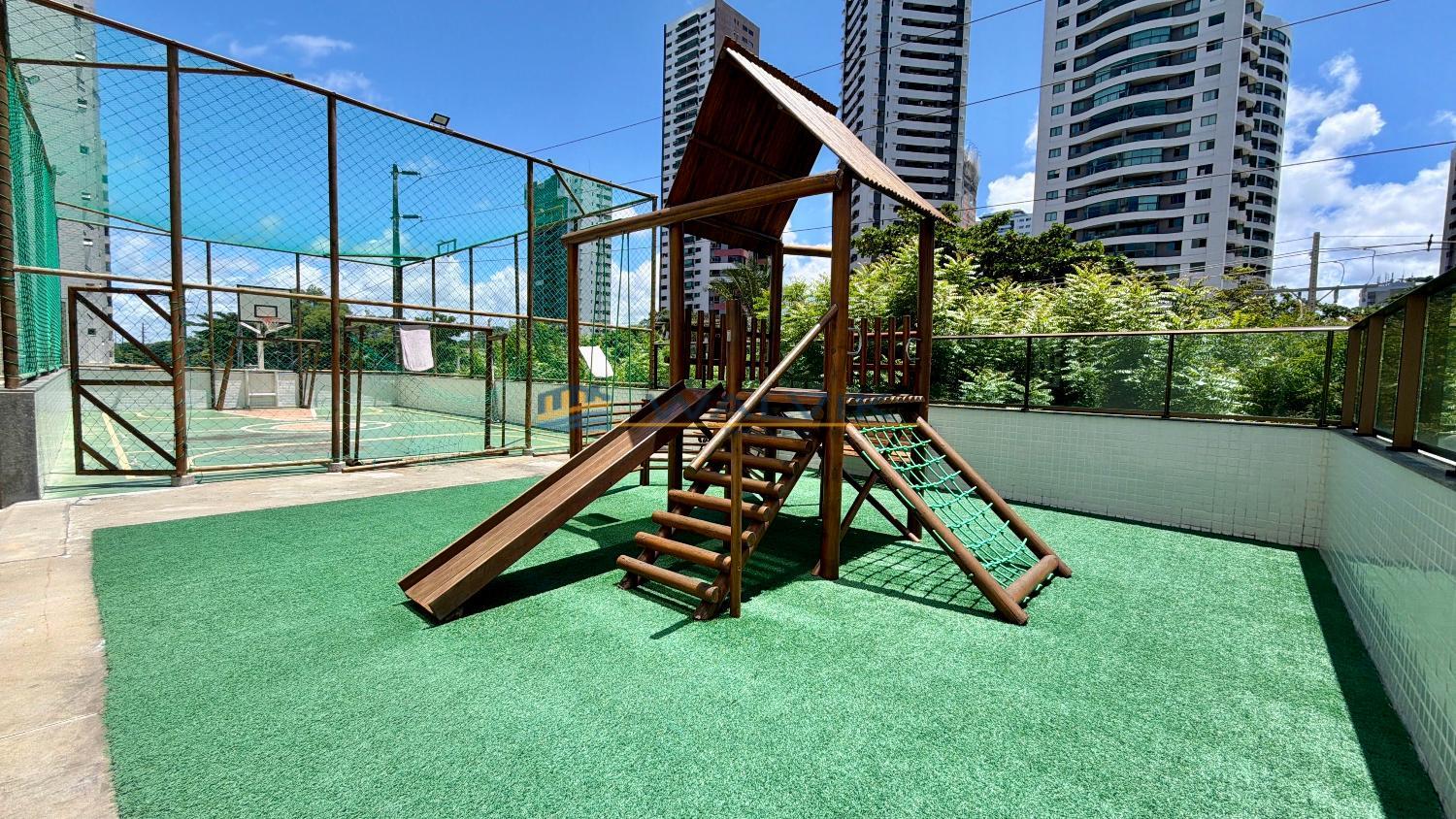 O empreendimento conta com 25 andares, 01 apartamento por andar, piscina, parquinho, quadra poliesportiva, salão de festas, gerador, portão eletrônico e portaria 24h.